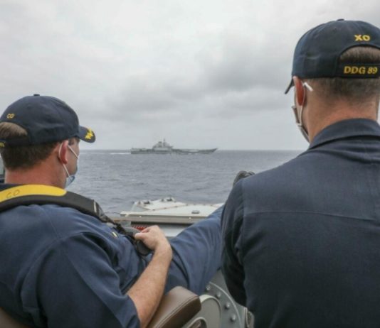 美海軍艦長翹腳笑看遼寧號 軍事專家:不太可能同時在...