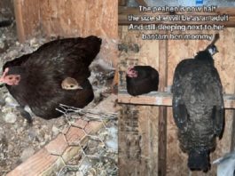 孔雀被「母雞乾媽」孵化養大 體型變三倍依然每天黏緊...